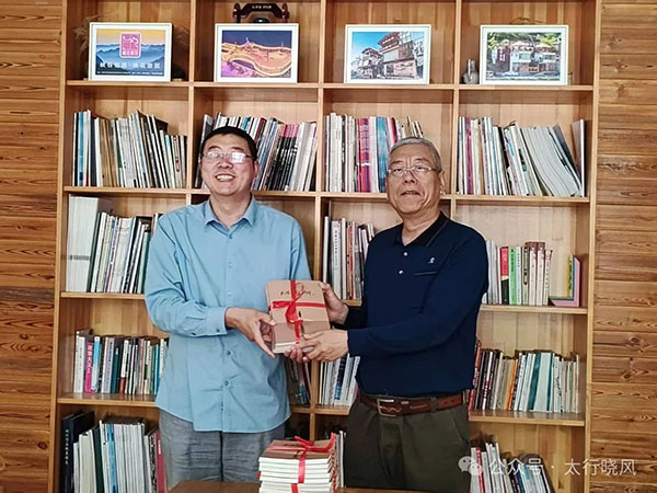 捐赠仪式上,宋海鸥紧握杨柳根先生的手,热忱地说:欢迎杨先生莅临民宿,很荣幸得到杨先生的赠书!我们将以此为契机,把书香民宿活动推上一个新台阶。也欢迎省内外游客,在大峡谷纵情山水的同时,来桃花雅居读书,研学和小住。