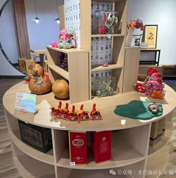在非遗展示墙前,你能看到相州瓷、靳氏剪纸、木板年画等众多非遗项目,仿佛翻开了一部太行山的文化百科全书。而在文创展区,葫芦烙画、布艺鸡、虎头玩偶等特色文创产品,更是让传统非遗技艺变为可触摸、可带走的旅行记忆。
