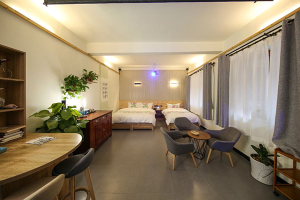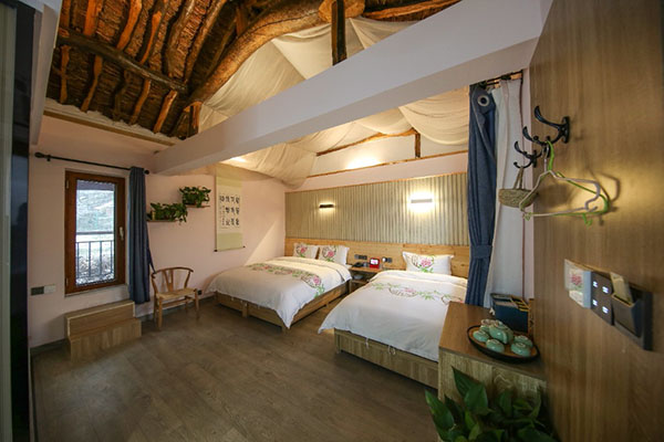 室外活动平台是雅居一大特色,共有6处,其中屋顶大平台最受客人喜爱。在此可俯瞰石板岩特色民居,可荡着秋千望星空,瞭望石板岩夜间繁华,可发呆可聊天。客栈外吉它形状的露天大音乐平台更令人难忘,可餐饮,可K歌,可开会,可活动,是个非常不错的多功能大舞台。
