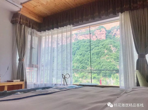 桃花雅居是一家集科技、服务、创新于一体的客栈,拥有大型观景房一间,视野开阔,家庭房配备浴缸,建筑面积650平方米,共3层,有12间客房,均以太行大峡谷景区内各个景点命名。房型涵盖标准间、大床房、家庭房和观景房。人员齐全,可举行生日派对,年夜饭