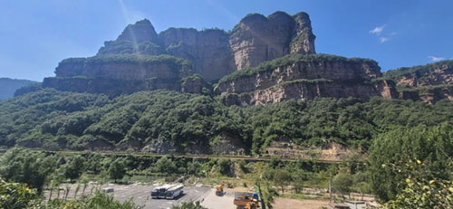 临风四顾,太行大峡谷、桃花谷、王相岩、仙桃峰、鲁班豁等等,胜状连连,尽收眼底。腑瞰苍溪,清流潺潺北去;抬望长天,白云悠悠南来。峡谷幽深,绝壁雄峙;群峰高耸,层峦叠翠。黄花艳,彩蝶舞;泉水叮咚,鸟虫争唱。天路车来人往,山色五彩缤纷。游目骋怀,风光无限,岂不醉乎。