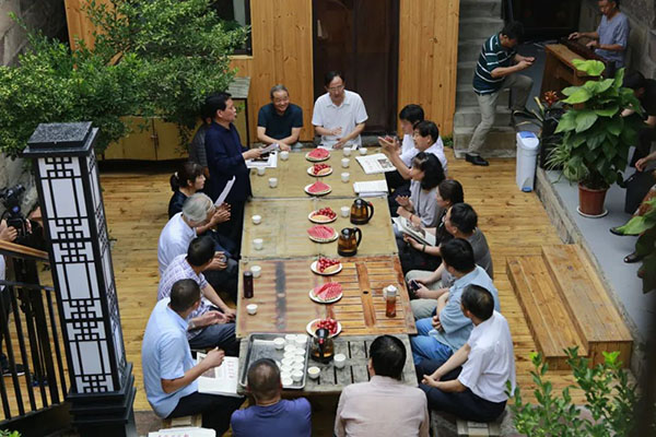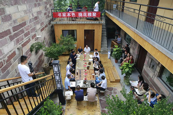 庚子皋月,端午前夕,苍溪之畔,太行深处,因著名书法家刘颜涛题“桃花雅居”及 “琴台”揭幕、赠书,并先生新编《洹上听涛.书家本色是真人》研讨事,群贤毕至,少长咸集。席间畅论纵横,各吐心言,气氛活跃,轻松自然。其时地人物情事之合,悉不多见矣。斯邺下文坛盛事,过即成史,百年回首,何以为记?因有此赋。