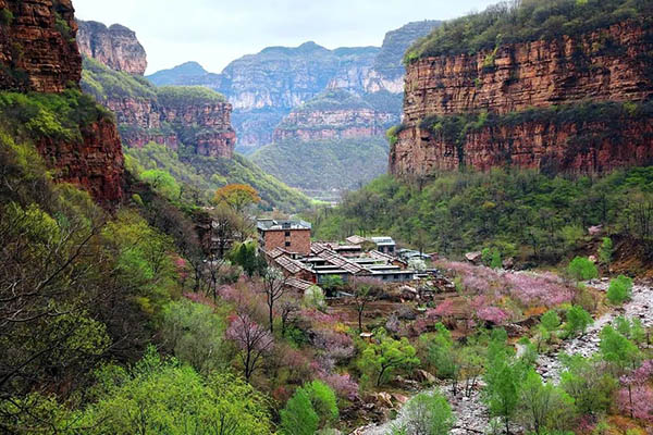 那生机勃勃的绿,那娇艳妩媚的红,那洁净无瑕的白,那富贵无限的黄,构成了春的颜色,描绘出了一个崭新的季节。一路沐着和煦的阳光,带上澄净的心境,满山遍野都能感受到透心的清爽,让人如痴如醉,如同走入梦境。行走在这样的氛围里,身心的愉悦是难以名状的。峡谷的深处是一方阔地,当它突现在眼前时,会让人禁不住脱口而出“好一个世外桃源”。