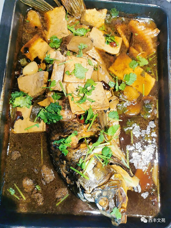 淇淅万泉湖的水,是国家二级水质,水质优良清澈,鱼类资源丰富,鱼肥水美,湿地风光独具特色。这老锅鱼呀,它是用铁锅、用柴火炖的,这柴火燃烧面积大,铁锅底部受热就均匀,自然而然,鱼在炖制过程中就很入味。据这里民宿管家介绍,老锅鱼一般都是慢炖一个钟头,然后在鱼快要出锅的时候,加上当地用卤水点的临淇老豆腐,一道地地道道的老锅鱼就出锅了。
